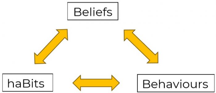 I call this the seven ‘B’s: Beliefs Beget Behaviours Become haBits Bolstering Beliefs.