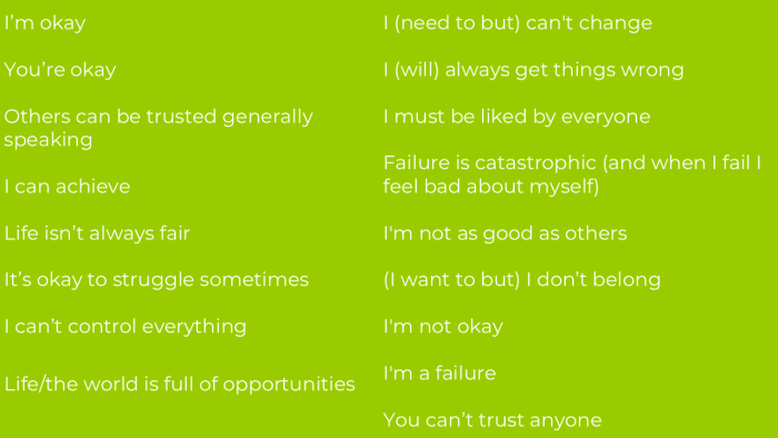 Here are some examples of both helpful/constructive and limiting/destructive beliefs. You can no doubt tell which are which: